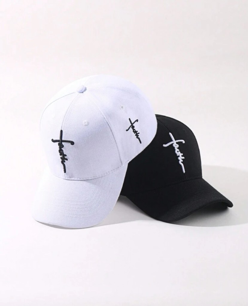 Men’s Fashionable Faith Letter Embroidery Baseball Cap, Sun-Proof And Adjustable, Suitable For Spring And Autumn Travel, Beach Parties, Etc. Available in white and black.