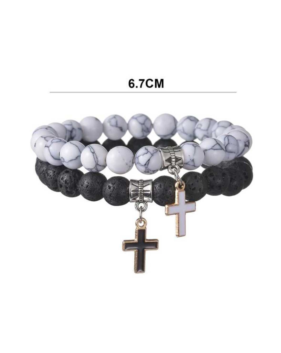 2pcs Natural Stone Cross Charm Couples Bracelet Set