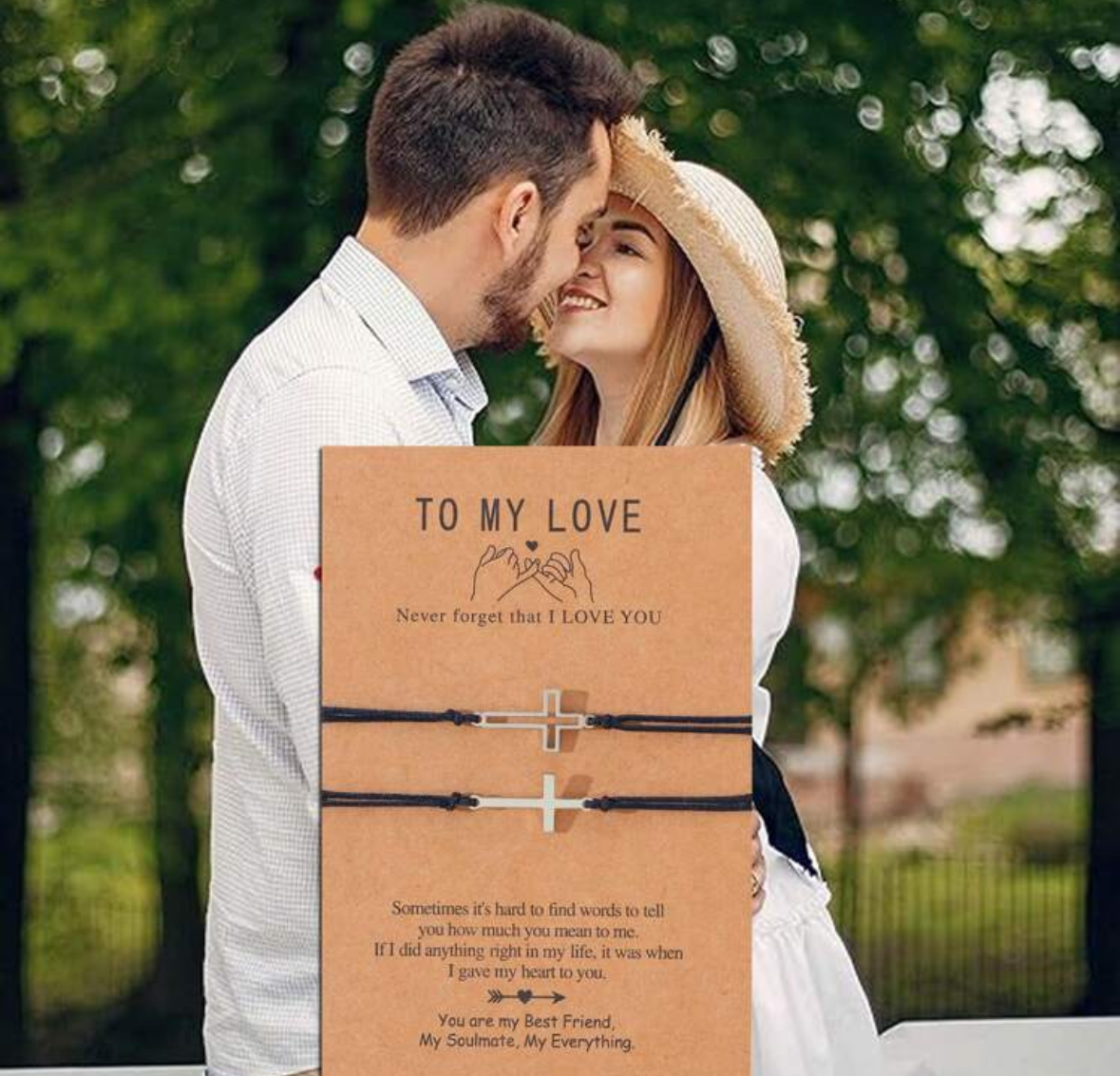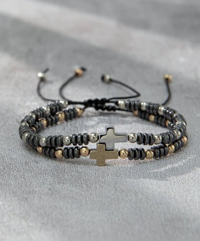 2pcs/set Creative Polished Stainless Steel Hollow Out Cross Lover Bracelet Set, Handmade Woven Bracelet With Exquisite Message Card And Gift Wrapping, Suitable For Christmas, Thanksgiving & Valentine’s Day Gift Giving