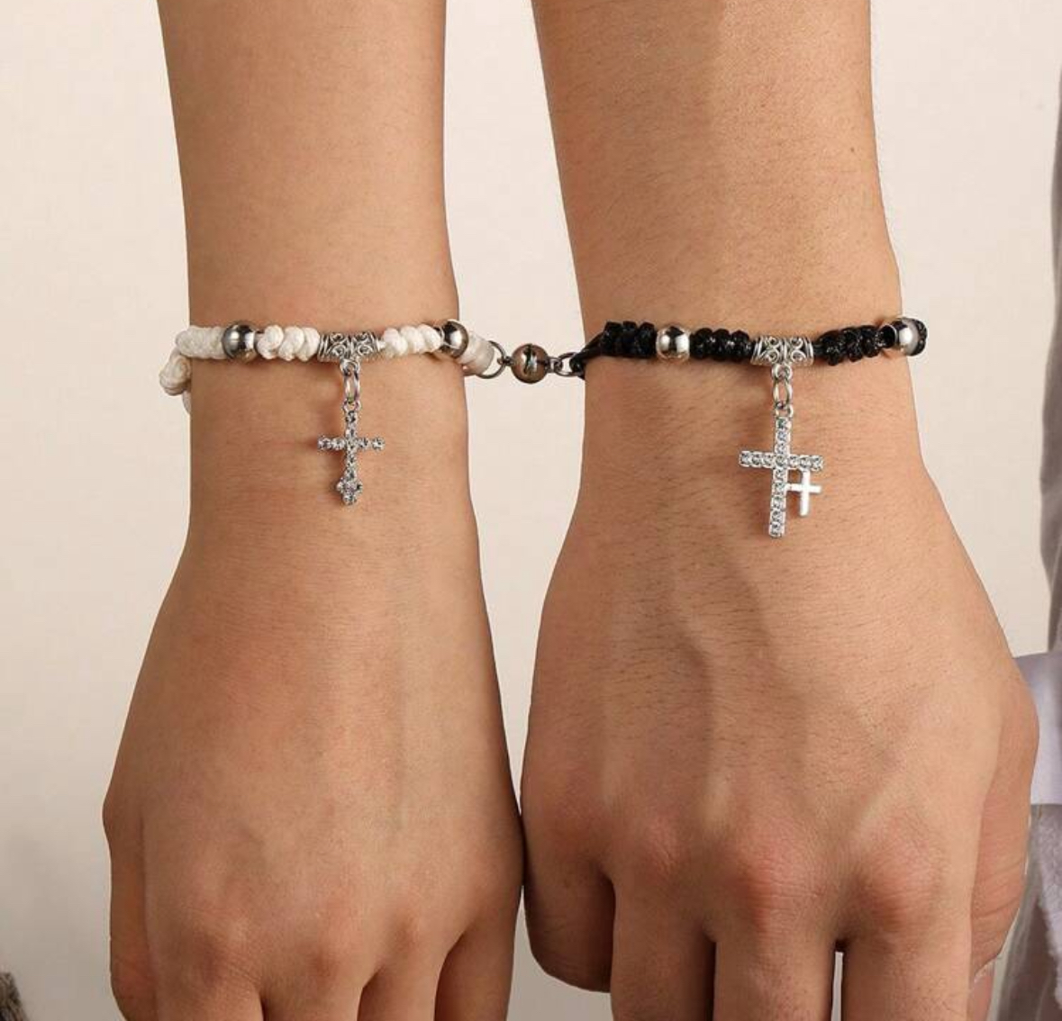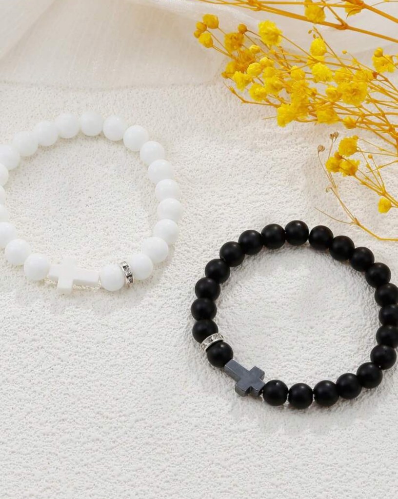 2pcs couple Cross Decor Beaded Bracelet