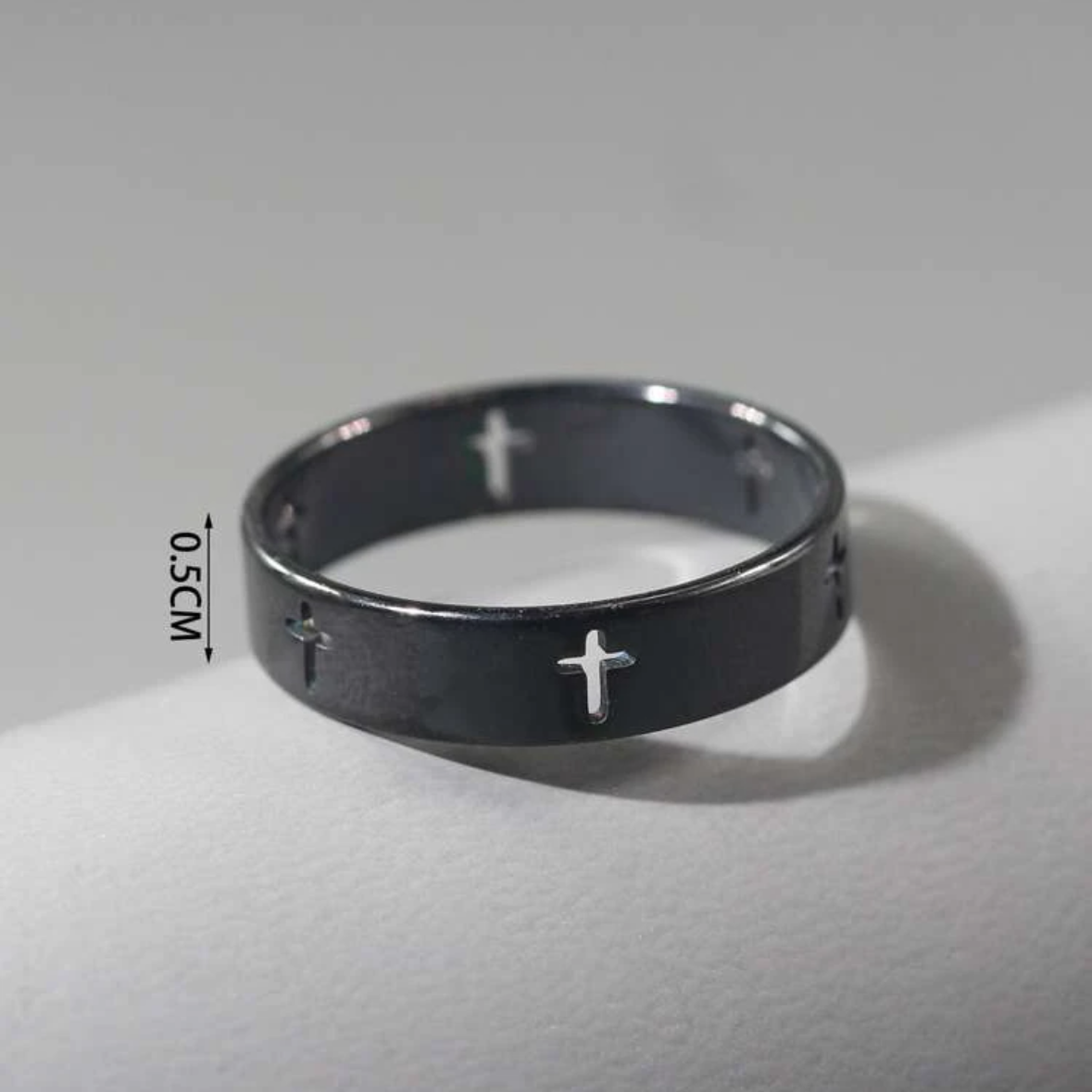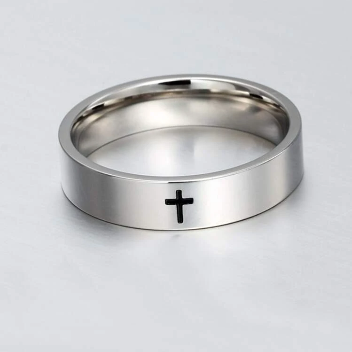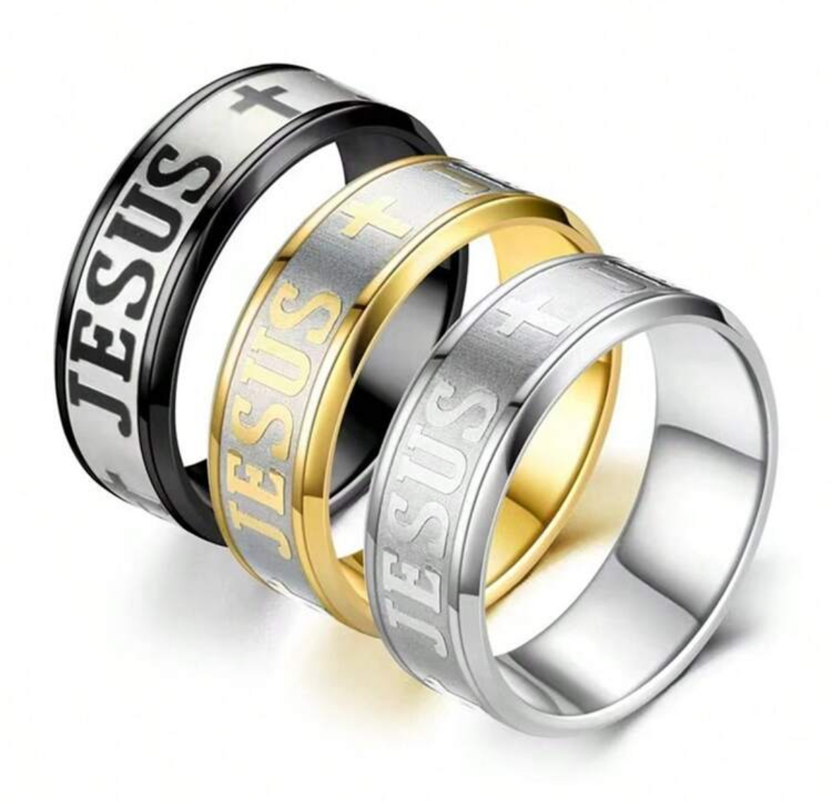 1pc 8mm Personalized Jesus Cross Stainless Steel Ring For Men, Fashionable & Popular, Great For Parties Or As A Daily Gift Black/Silver/Gold
