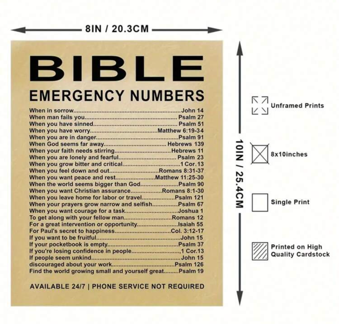 1pc Vintage Color Bible Verse EmergencyNumber Bible Werse Wall DecorationPendant For Living Room Decoration,Office Decoration, , Or Room Decor,A Vintage Faith Christian Gift(Without Frame)