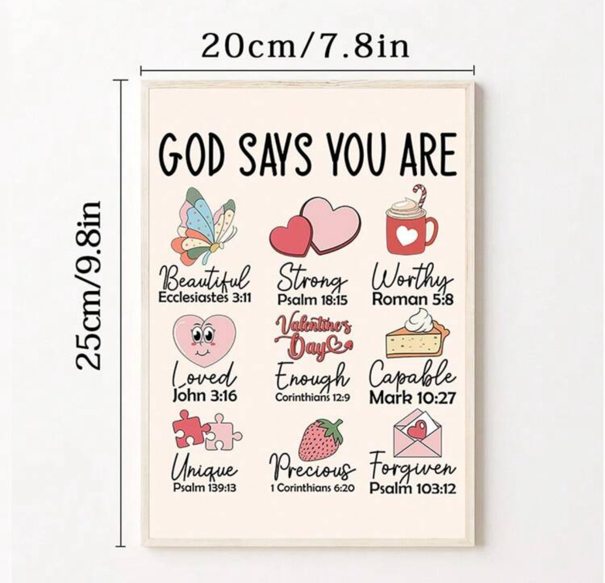 1PC God Says You Are Quotes Bible Verses Bohemian Pink Poster Room Decorator Kids